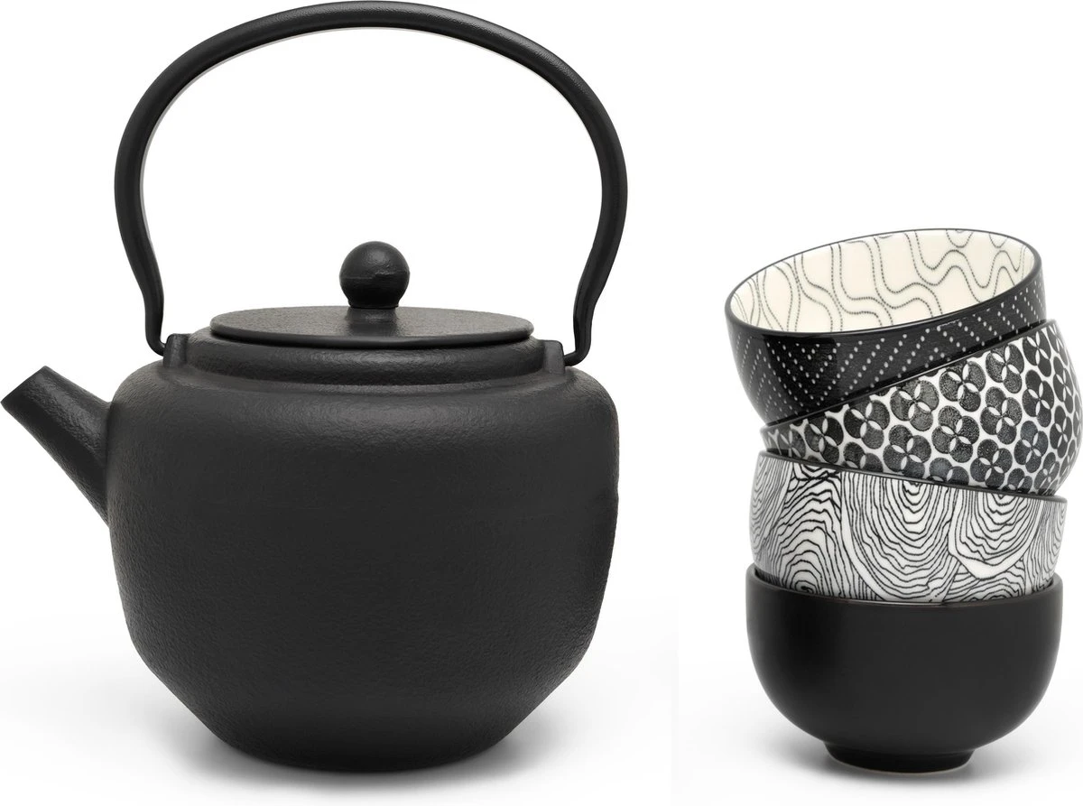 Deze set van 4 theekommen hebben een eigentijds patroon. Iedere mok is verschillend van dessin, zowel buiten- als binnenzijde. De theekommen passen bij theepot Pucheng en zijn vaatwasmachinebestendig. Wordt geleverd in een set van vier stuks.