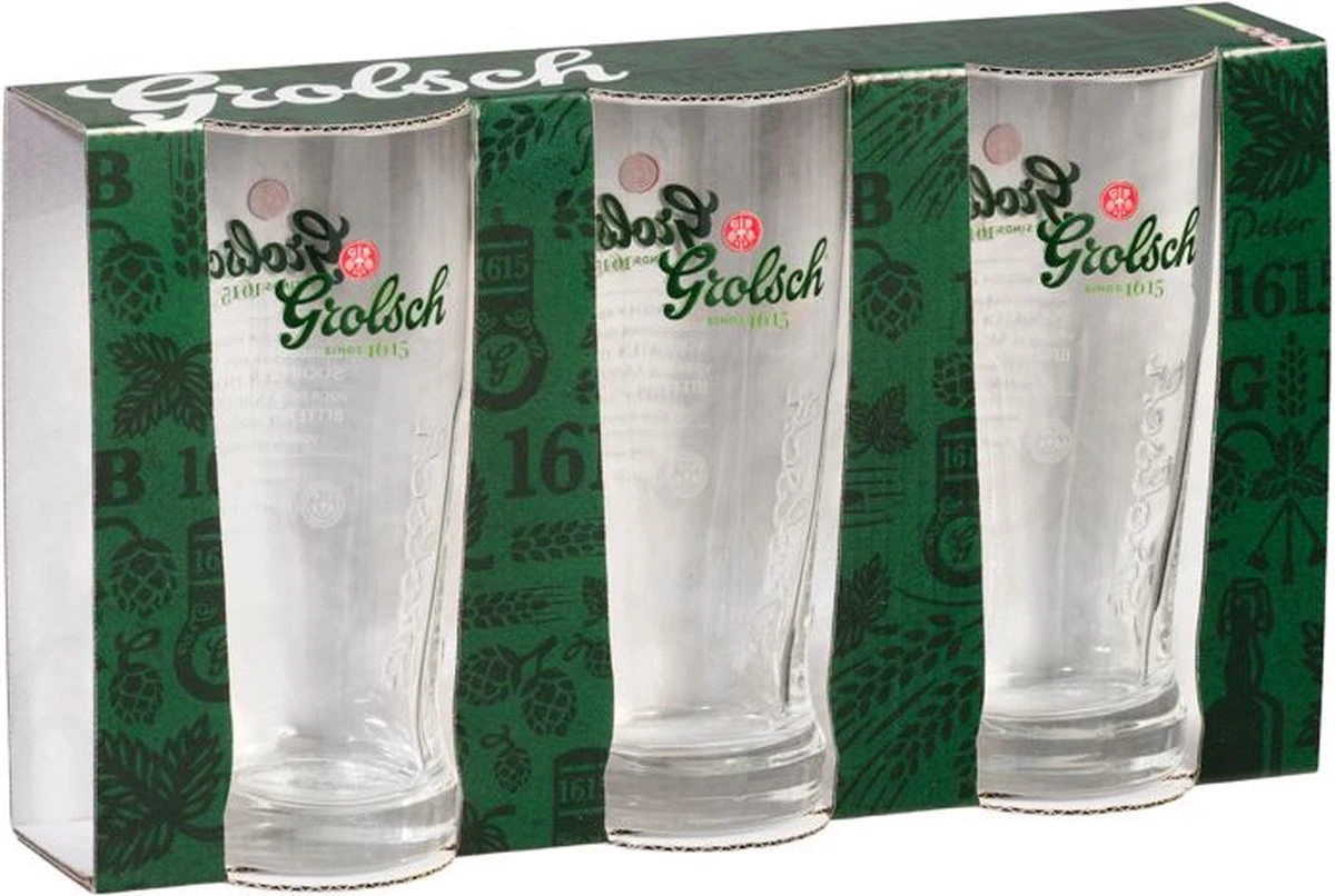 Mocht er iets niet goed zijn met de bestelde Grolsch giftpack dan kun je de bestelling tot 30 dagen na ontvangst retourneren. Mooie geschenkverpakking met drie Master glazen. Aan de buitenkant van de glazen voel je de unieke Grolsch embossing die ook zo kenmerkend is voor onze groene flessen. Alvast veel plezier met het geven van dit Grolsch cadeaupakket! Inhoud: 3 x 25cl Master glas