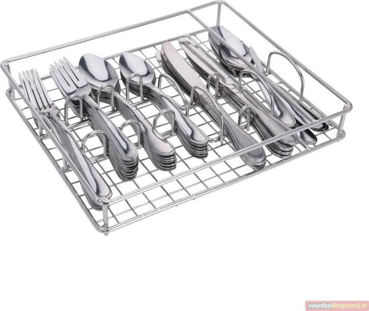 Een mooie, eigentijdse bestekset uitgevoerd in robuust roestvrij staal. Deze complete set bevat vorken, messen, lepels en diverse extra stukken voor 8 personen. Deze set is een aanwinst voor iedere eettafel.
