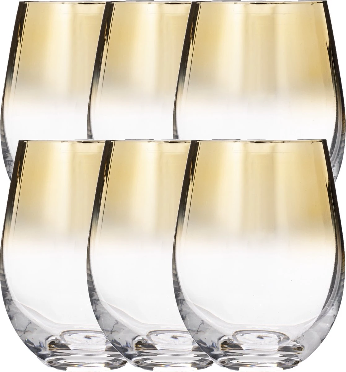 Merkloos Set Van 6x Stuks Tumbler Glazen Gouden Rand Arya 540 Ml Van Glas – Drinkglazen – Waterglazen