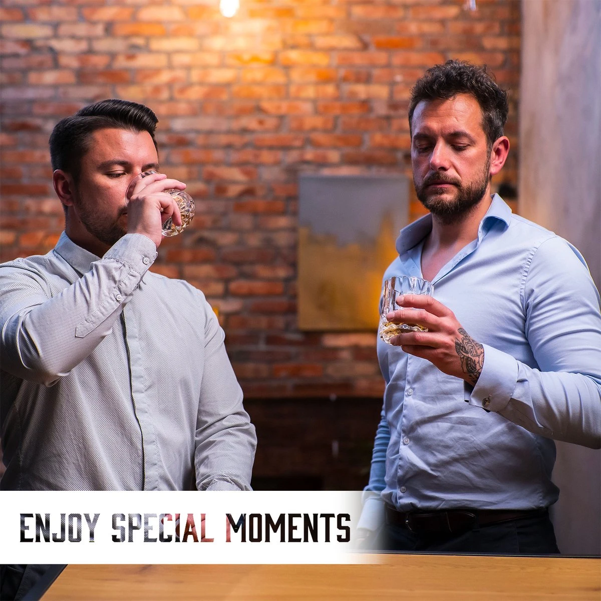 Trakteer jezelf of een andere op deze whiskey geschenkset. Een complete set om nog meer uit jouw whiskey moment te halen. De set bevat twee zware tumbler whiskey glazen, 8 granieten whiskey stenen, een opbergzakje om de stenen netjes bij elkaar te houden en ijstang en een setje houten onderzetters. Dit allemaal netjes verpakt in een luxe houten giftbox.